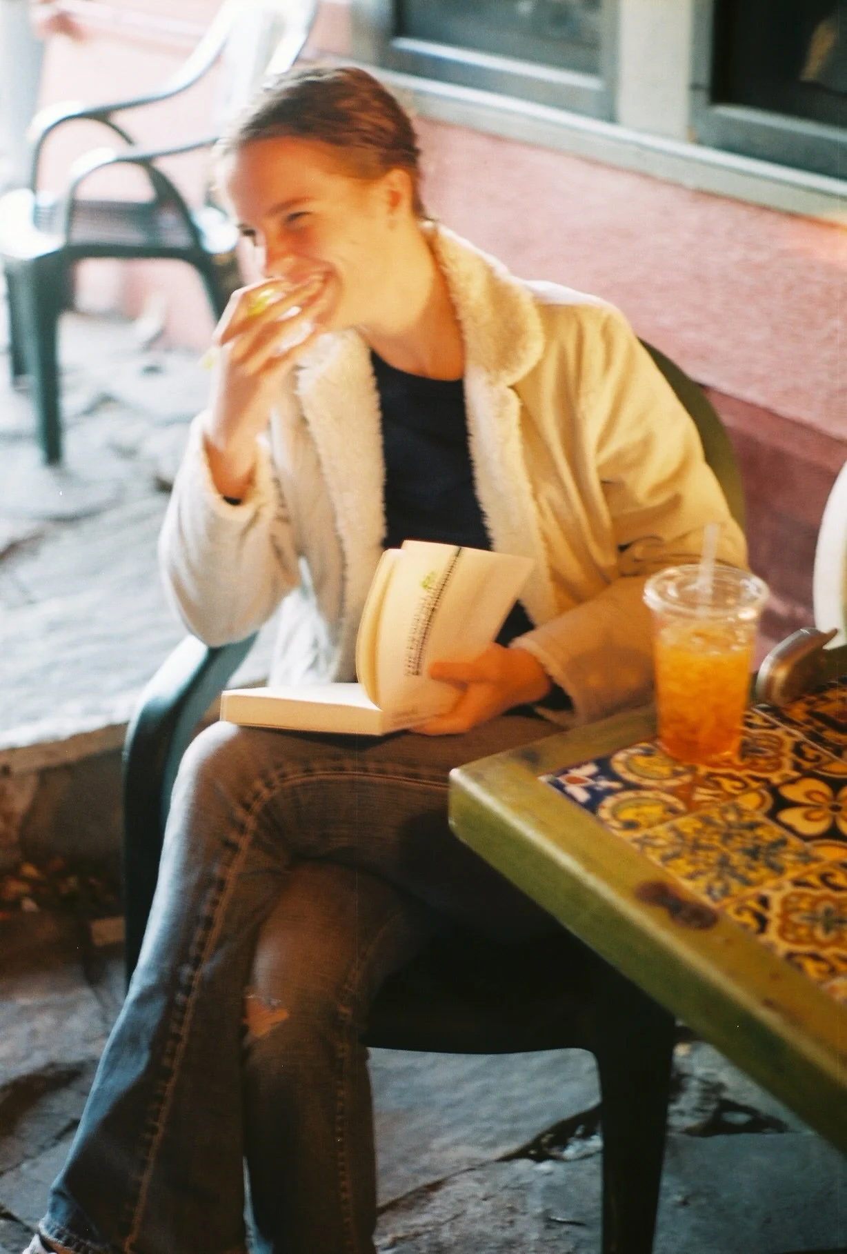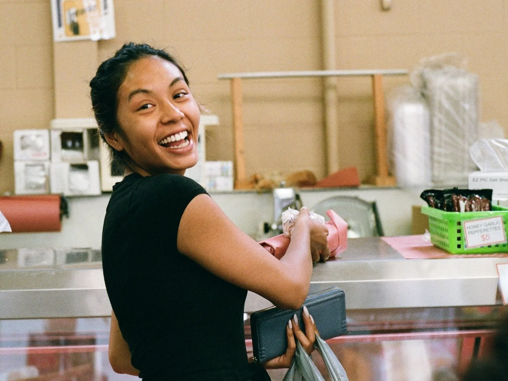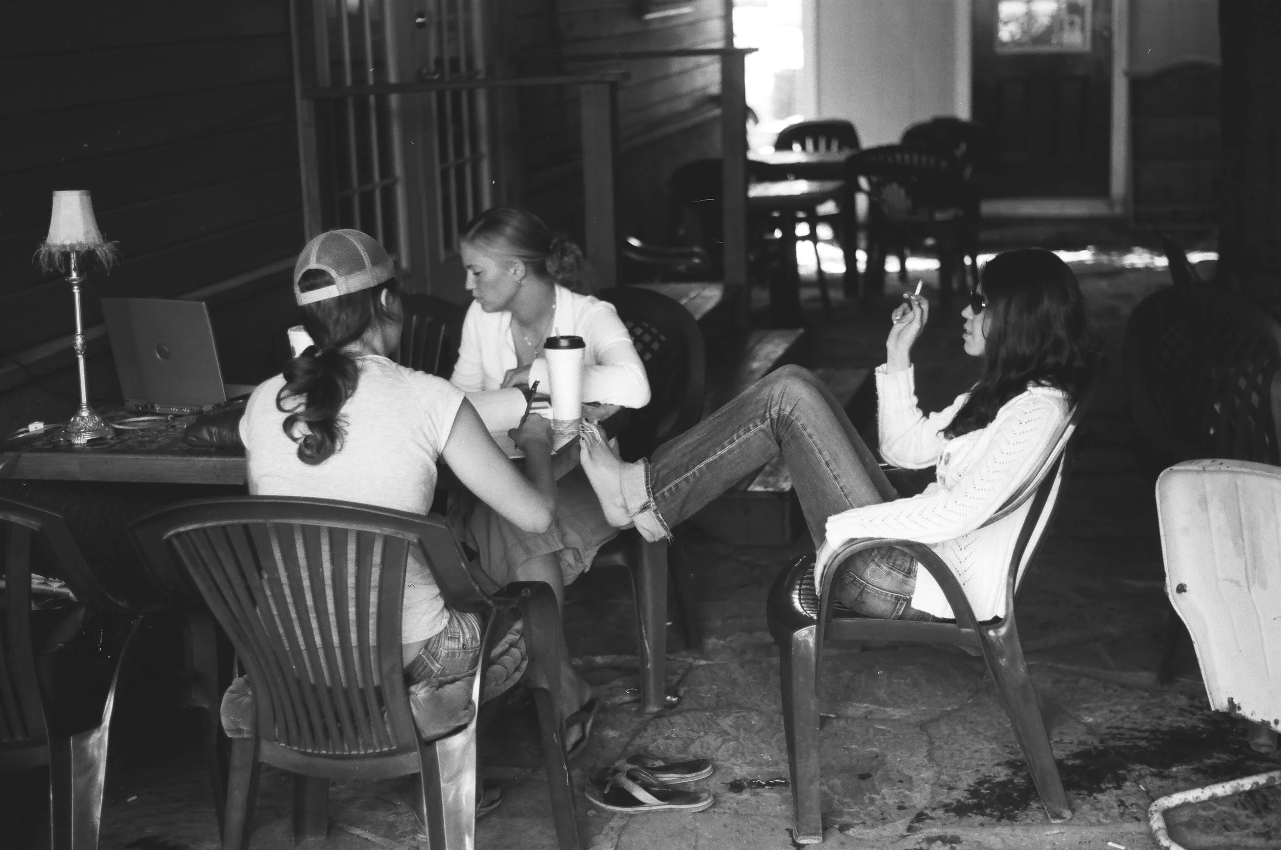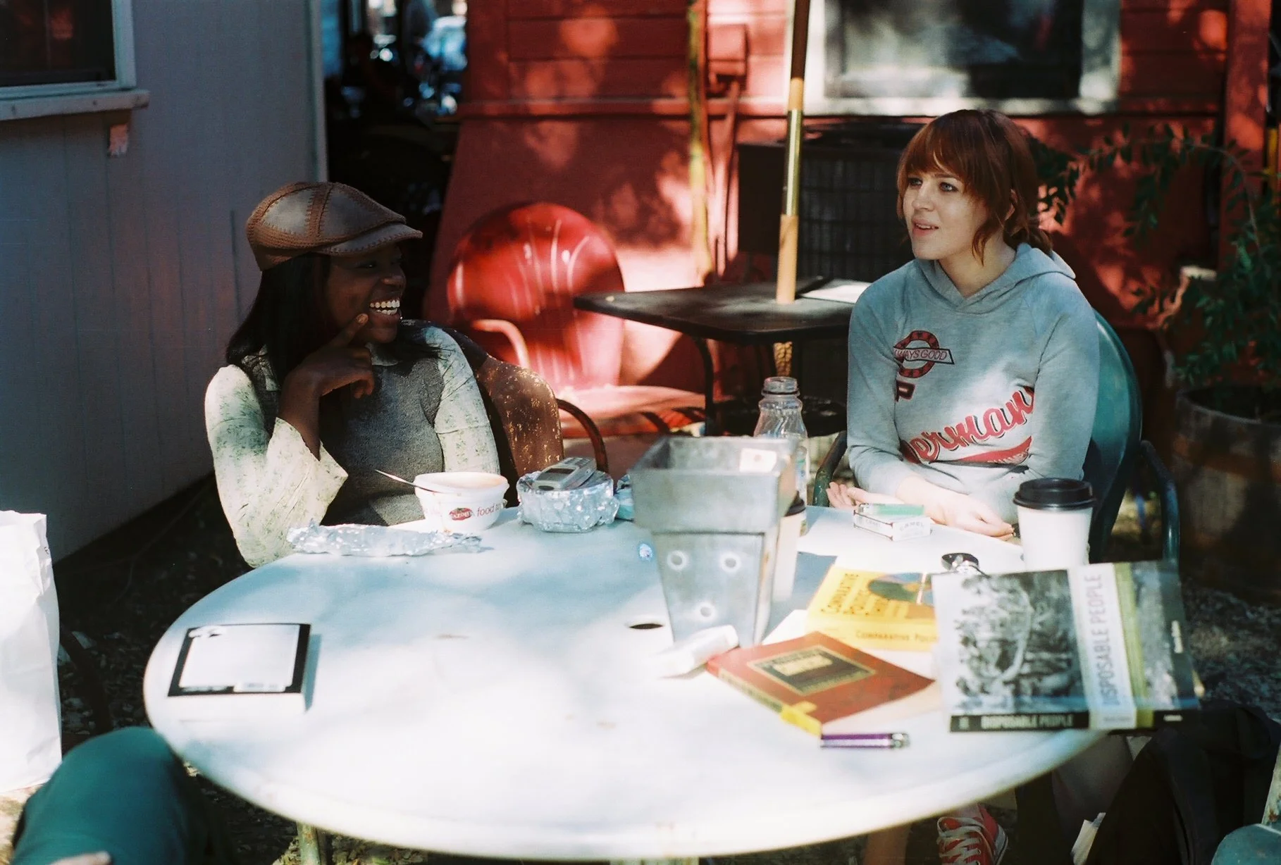 Cassie and the baristas on break